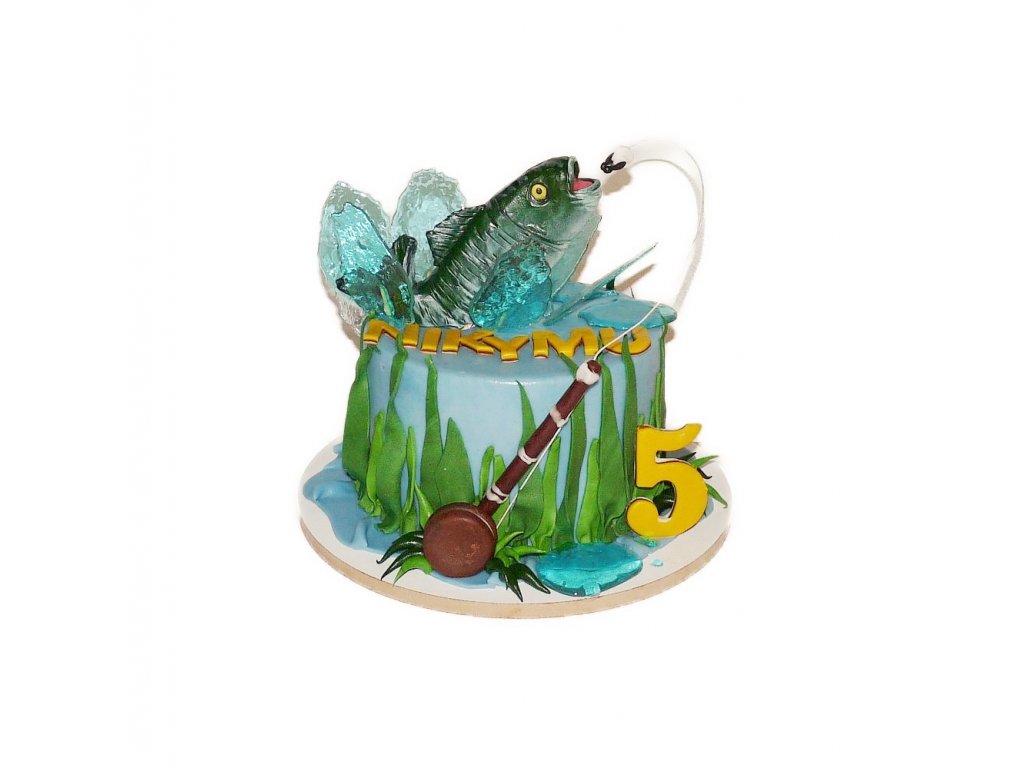 Marcipánový dort na rybářské téma se pstruhem.