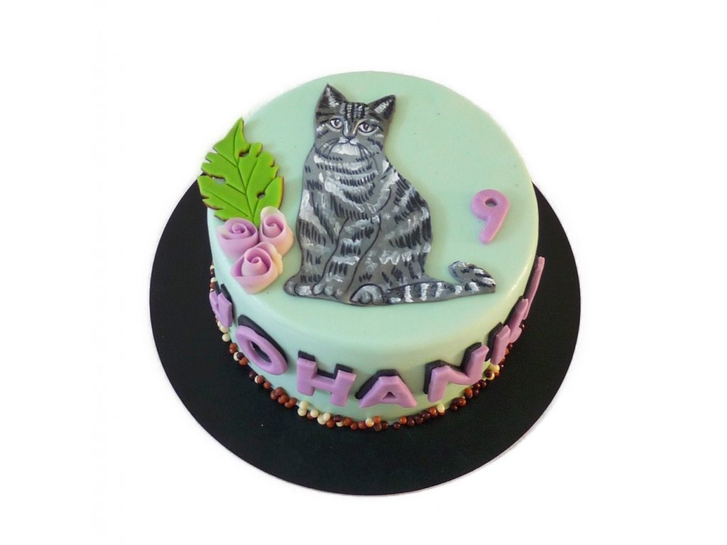 Dort s modelací reliéfu kočky na vrchu dortu. Lze si vybrat složení náplně a zadat vlastní nápis jména i číslice. Požadavek uveďte prosím v textovém oknu (3.krok v košíku).