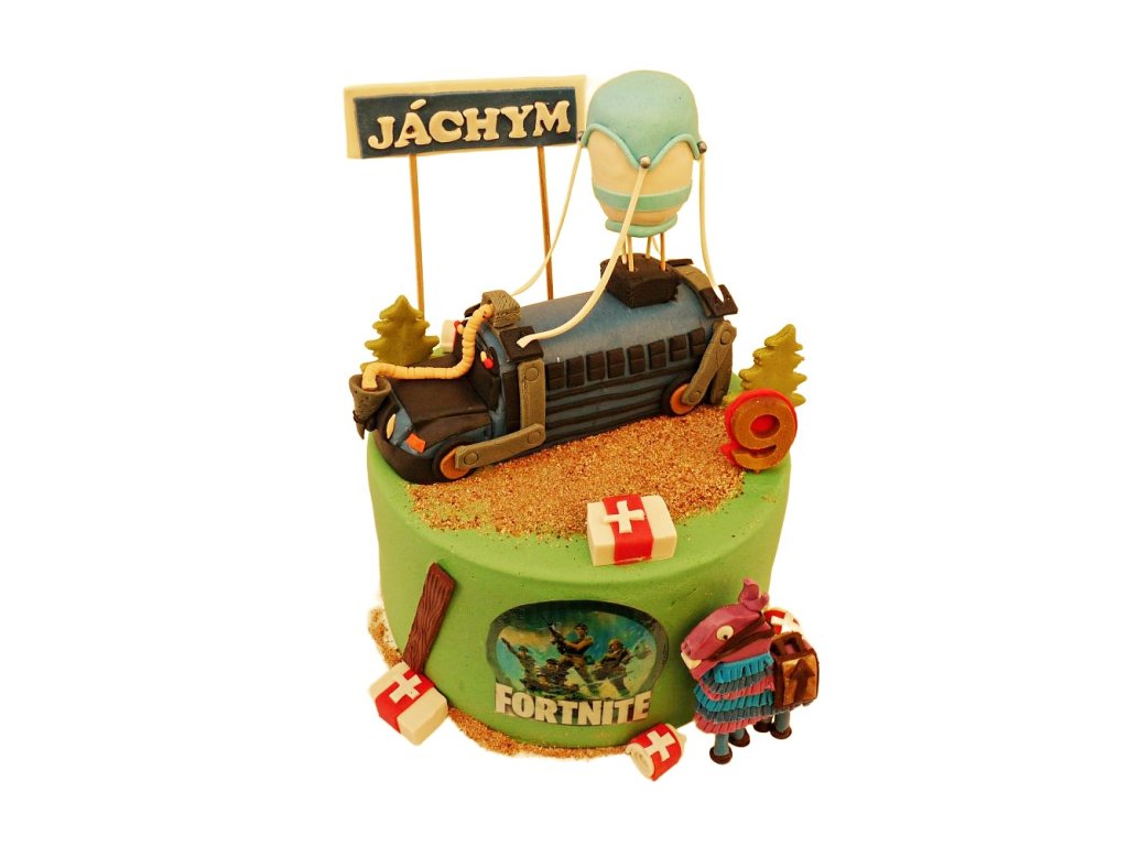 Marcipánový dort Fortnite bus