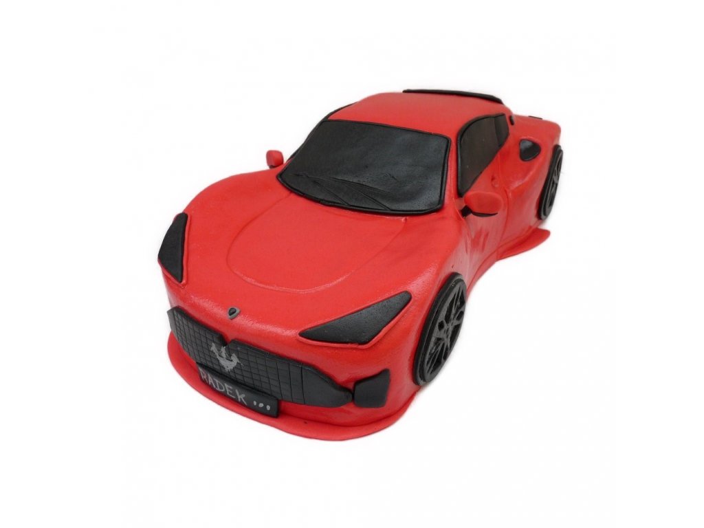 Modelovaný dort ve 3D tvaru auta Maserati potažený marcipánem. Na přání lze změnit barvu potažení dortu.