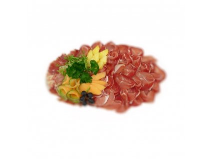 Slaná varianta dortu z vrstev plátkových sýrů a plátků uzenin, spojených bylinkovým smetanovým sýrem.
